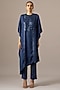 Featuring a denim blue kaftan in cupro base with matrix embroidery. It is paired with pants. Accentuate it with stud earrings and heels for festive occasions.