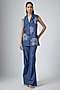 Featuring a denim blue top in modal linen base. It is paired with pants. Accentuate it with statement earrings and heels for evening wear or dinner outings.