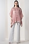 Featuring a dusty pink kaftan top in sandwash base with floral hand and machine embellishments. This contains only one piece.