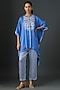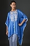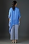 Featuring a german blue top in satin base. It is paired with an inner and pants. Accentuate it with statement jewellery and heels for a festive occasion.