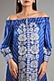Featuring a german blue off-shoulder dress in satin base. It is paired with a belt. Accentuate it with statement earrings and heels for a casual outing.