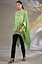 Featuring a green tunic in crinkle cupro base. It is paired with an inner. Accentuate it with pants, stud earrings and heels for an evening or a casual look.