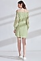 Featuring a guava green dress in textured striped base with pearls embellishment. It is paired with a matching slip.