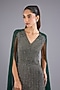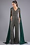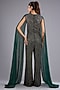 Featuring a hunter green jumpsuit in viscose georgette base with embroidery and fringe cape sleeves. Style it with strappy heels, bold earrings, and a sleek low ponytail for a polished look. Perfect for cocktail nights, receptions, sangeet functions, and glamorous festive events.