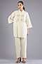 Featuring an ivory shirt in shimmer satin base with floral hand and machine embellishments. It is paired with pants. Style it with minimalist jewellery, a sleek ponytail, and strappy heels for a chic vibe. Perfect for brunches, casual outings, office events, or relaxed festive gatherings.