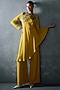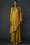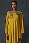 Featuring a mustard asymmetric tunic in georgette base with paisley hand embellishments. Accentuate it with pants, minimal jewellery and heels for casual wear or family gatherings.