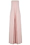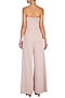 Featuring a muted pink layered jumpsuit in jersey base with shimmery bandeau neckline.