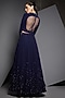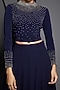Featuring a navy blue blouse in jersey and georgette base with hand embroidery. It is paired with a matching skirt.