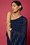 Featuring a navy blue draped gown in georgette, net and shimmer base with baroque hand embroidery.
