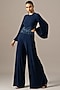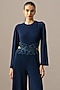 Featuring a navy blue jumpsuit in jersey base with side cut and baroque embroidery. Accentuate it with statement earrings for a stylish ensemble, ideal for evening wear or cocktail nights.