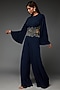 Featuring a navy blue wide-legged jumpsuit in jersey base with geometric embellishments and cut-outs.