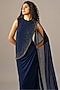 Featuring a navy blue star draped gown in jersey base. Accentuate it with statement earrings for a stylish ensemble, ideal for evening wear or cocktail nights.