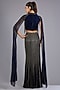 Featuring a navy blue top in viscose georgette and crepe base. It is paired with a skirt and cape. Style it with strappy heels, bold earrings, and a sleek low ponytail for a polished look. Perfect for receptions, sangeet functions, and glamorous festive events.