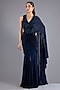 Navy Blue Viscose Georgette Flare Draped Saree Set