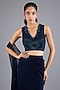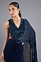 Featuring a navy blue flare draped saree in viscose georgette base. It is paired with a blouse. Style it with strappy heels, bold earrings, and a sleek low ponytail for a polished look. Perfect for cocktail nights, receptions, sangeet functions, and glamorous festive events.