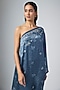 Featuring a navy one-shoulder dress in cupro base with print. Accentuate it with statement earrings and heels for brunches, sundowner or vacation outings.