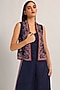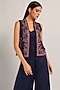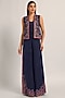 Featuring a navy jumpsuit in cupro satin base with paisley print. It is paired with a jacket. Accentuate it with statement earrings and heels for evening wear or date nights.