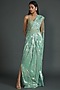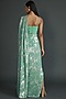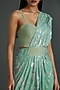 Powder Blue Metallic Shimmer Foil Crepe Draped Saree Set