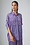 Featuring a purple shirt in cupro satin base with print. It is paired with pants. Accentuate it with statement earrings and heels for brunches, sundowner or evening wear.