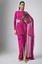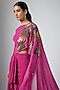 Featuring a ruby blush draped saree in jersey base with floral hand embellishments. It is paired with a blouse. Accentuate it with zircon jewellery and heels for a sangeet or cocktail ceremony.