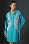Featuring a sapphire boxy dress in bubble georgette base. Accentuate with statement earrings and heels for cocktail parties.