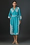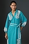Featuring a sapphire dress in bubble georgette base. It is paired with a belt. Accentuate with statement earrings and heels for cocktail parties.