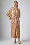 Featuring a mocha-colored midi dress in satin base. Accentuate it with statement earrings and heels for evening wear or date nights.