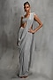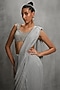 Silver Shimmer Crepe Floral Embellished Draped Saree Set