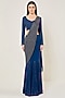 Featuring a teal blue saree in viscose georgette base with emerald drape. It is paired with a blouse having full sleeves. Accentuate it with statement jewellery and heels for a sangeet ceremony.