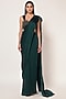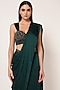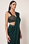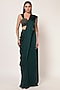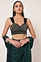 Featuring a teal green draped saree in velvet and crepe base. It is paired with a corset blouse. Accentuate it with statement jewellery and heels for a sangeet ceremony.