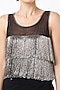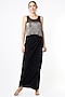 Featuring a silver and black tasselled top in net base. It is paired with a contrasting satin draped skirt.