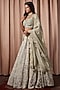 Featuring an ivory and mint lehenga in georgette and tafetta base with chikankari and mirror work. It is paired with a dupion silk blouse and an organza dupatta. Style it with statement jewellery and heels for the perfect bridal look.