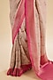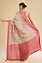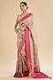 Featuring a beige saree in blend silk base. It is paired with an unstitched blouse fabric. Style this exquisite ensemble with luminous diamond jewellery, heels and refined makeup for a timeless look perfect for festive occasion, sangeet or pooja ceremonies.