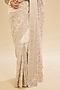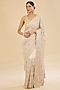 Featuring a beige saree in georgette base with embroidery. It is paired with an unstitched blouse fabric. Style this exquisite ensemble with luminous diamond jewellery, heels and refined makeup for a timeless look perfect for festive occasion, sangeet or pooja ceremonies.