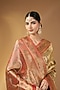 This exquisite beige gold crepe silk saree with floral and zari work. The saree comes with an unstitched blouse piece. Style it with a structured blouse and statement earrings for a refined look.