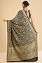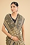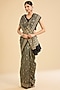 Featuring a black and cream saree in cotton base with bandhej print and hand work. It is paired with an unstitched blouse. Accentuate it with dangler earrings and juttis for a festive look or cultural events.