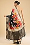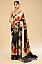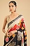 Featuring a black saree in crepe satin silk base with embroidery. It is paired with an unstitched blouse. Accentuate it with polki stud earrings, a clutch and heels for a sangeet, engagement or pooja ceremony.