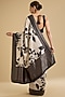 Featuring a black and white saree in satin base with print and swarovski border detail. It is paired with an unstitched blouse fabric. Style it with wedges, gold jhumkas and a sleek bun for a chic ethnic look. Ideal for festive gatherings, family functions, or sangeet ceremonies.