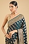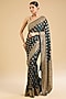 Featuring a blue saree in georgette base with cutdana and kundan embellishment. It is paired with an unstitched blouse. Accentuate it with polki stud earrings, a clutch and heels for a sangeet, engagement or pooja ceremony.