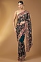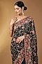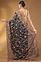 This mesmerizing peacock blue georgette saree with kashmiri jaal work and swarovski crystal detailing. The saree comes with an unstitched blouse piece. Style it with a structured blouse and statement earrings for a refined look.