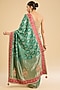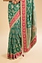 Featuring a bottle green saree in georgette base with zari work. It is paired with an unstitched blouse fabric. Style it with wedges, gold jhumkas and a sleek bun for a chic ethnic look. Ideal for festive gatherings, mehendi, or sangeet ceremonies.
