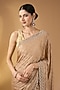 This champagne satin all-over swarovski zaal work saree features intricate detailing and a stylish cut work border. A perfect saree for an elegant and glamorous look. The saree comes with an unstitched blouse piece.
