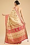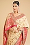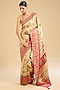 Featuring a cream saree in banarasi satin silk base with floral jaal and swarovski embellishments. It is paired with an unstitched blouse. Accentuate it with dangler earrings and juttis for a festive occasion or pooja ceremony.