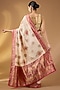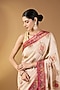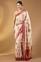 This resplendent cream paper silk saree with zari jaal pattern. The saree comes with an unstitched blouse piece. Style it with a structured blouse and statement earrings for a refined look.