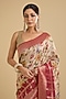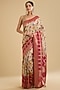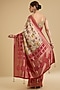 Featuring a cream saree in silk base with jaal zari weaving and rani pink-gold zari border. It is paired with a rani pink unstitched blouse. Accentuate it with dangler earrings and juttis for a festive occasion or pooja ceremony.