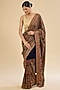 Featuring a dark blue saree in khadi georgette base with kashmiri, swarovski stone embroidery. It is paired with an unstitched blouse fabric. Style this exquisite saree with luminous diamond jewellery, heels and refined makeup for a timeless look perfect for a wedding, engagement sangeet ceremonies.