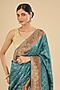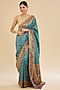 Firozi Blue Silk Floral Embroidered Saree Set