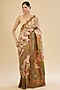 Golden Blended Silk Floral Motif Embroidered Saree Set