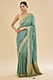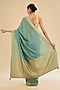 Featuring a green saree in georgette base with embroidery. It is paired with an unstitched blouse fabric. Style this exquisite ensemble with luminous diamond jewellery, heels and refined makeup for a timeless look perfect for festive occasion, sangeet or pooja ceremonies.