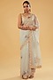 Featuring a grey saree in organza base with embroidery and floral print. It is paired with an unstitched blouse. Accentuate with statement jewellery and heels for a pooja ceremony or festive occasion.